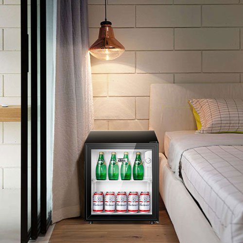 Shop Adamo Table Top Fridge - Black with Glass Door | SC50 from the huge range of electrical products at Tadhg O'Connor Euronics Co. Limerick. Nationwide Delivery Available